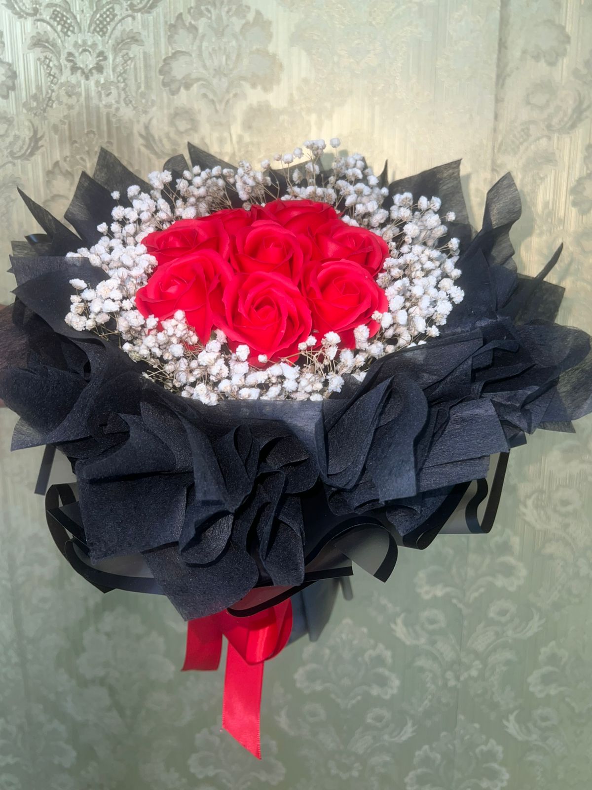 black wrapping with baby breath
